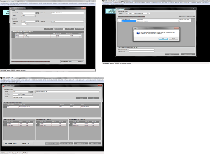 | Detaylı ürün reçetesi oluşturabilmek mümkündür. |